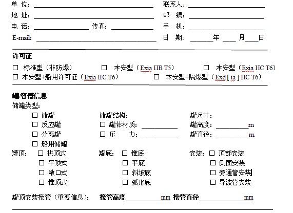 应用:过程条件简单,腐蚀性的液体、浆料、固体比如:污水储罐,酸碱储罐,浆料储罐,固体颗粒,小型储油罐