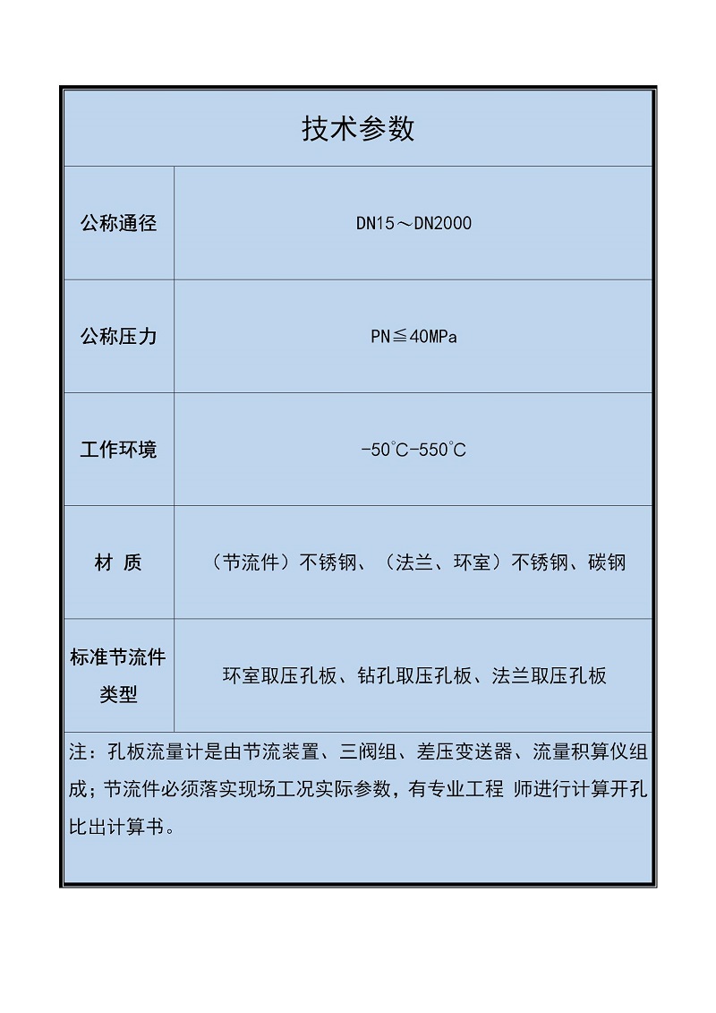 节流件类型:标准孔板、圆缺孔板、双重孔板、喷嘴、文丘里管等