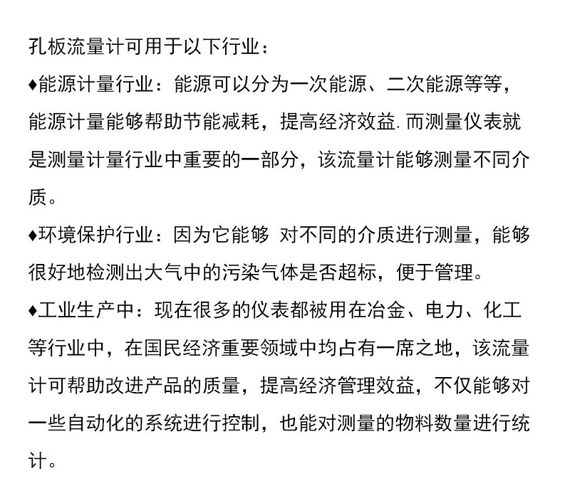 广泛应用于石油、化工、冶金、电力、供热、供水等领域的过程控制和测量。孔板樱桃视频大全被广泛适用于煤炭、化工、交通、建筑、轻纺、食品、医药、各个领域。在过程自动化仪表与装置中,流量仪表有两大功用:作为过程自动化控制系统的检测仪表和测量物料数量的总量表。