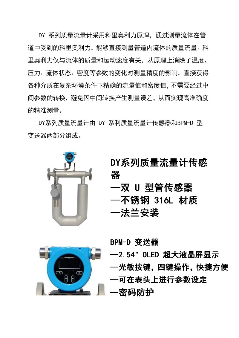 DY 系列质量樱桃视频大全采用科里奥利力原理,通过测量流体在管道中受到的科里奥利力,能够直接测量管道内流体的质量流量。可测温度:(-240~204)℃